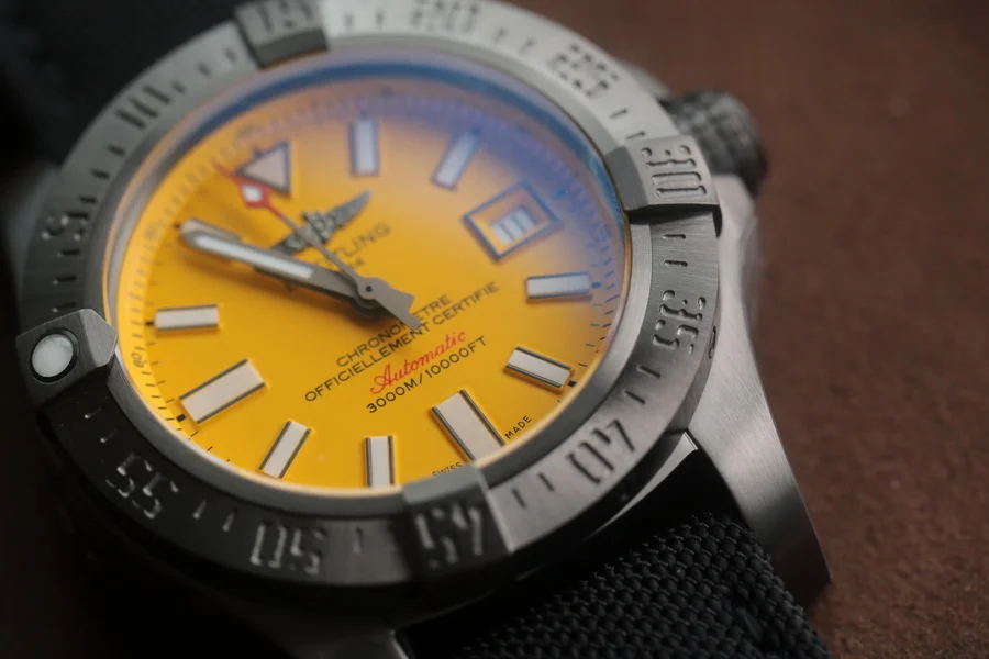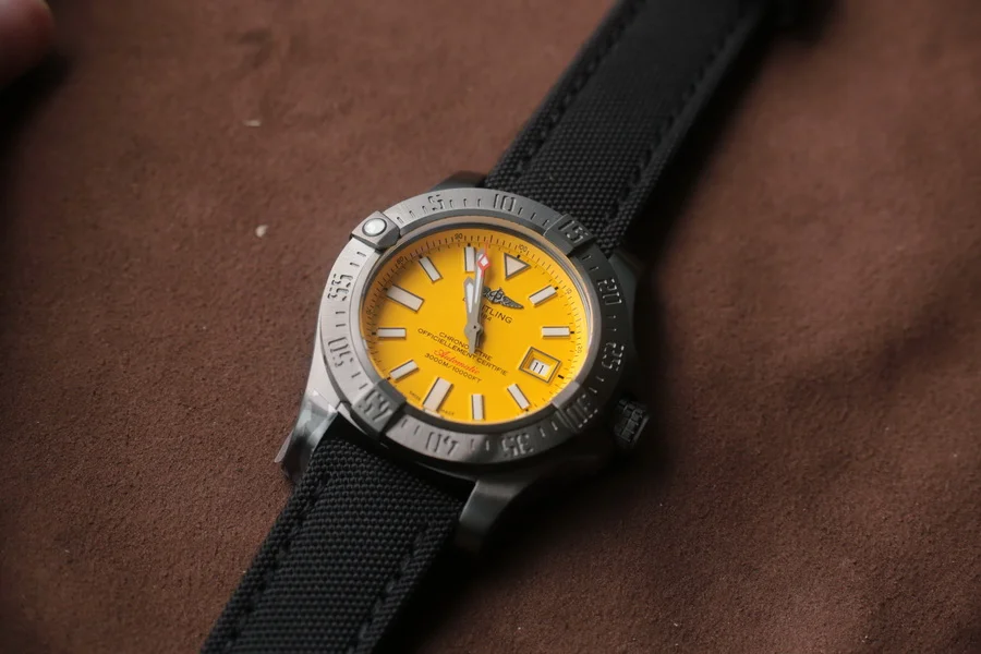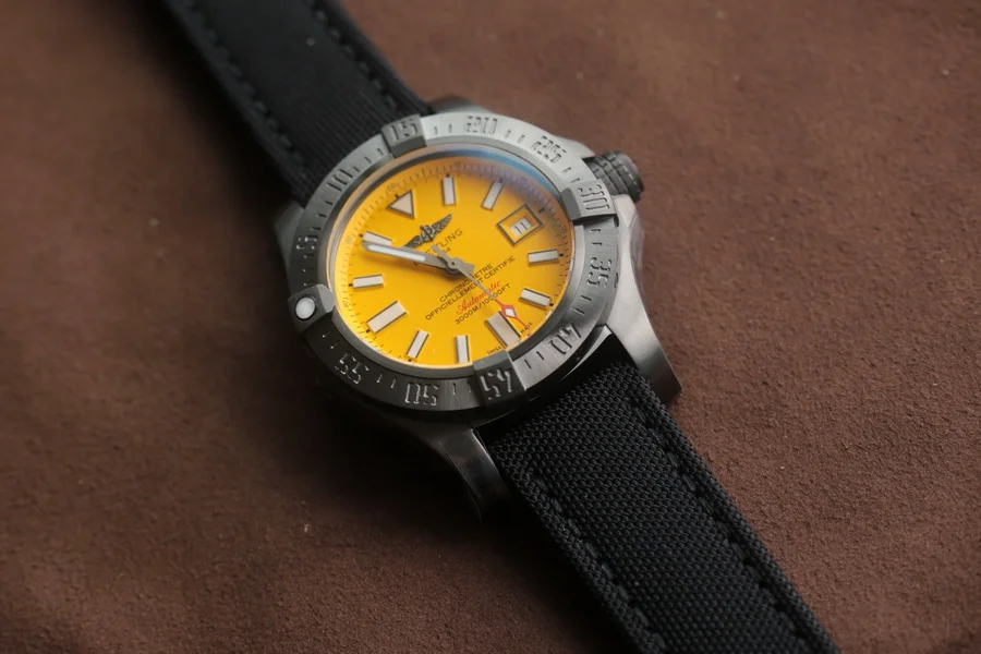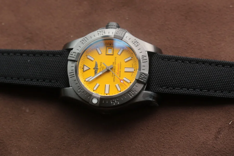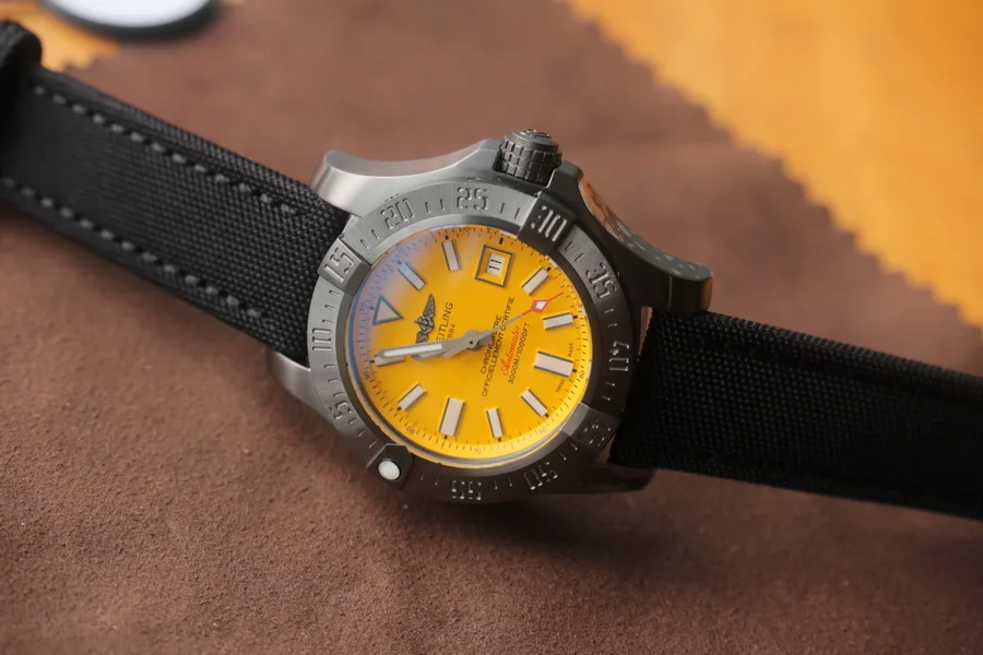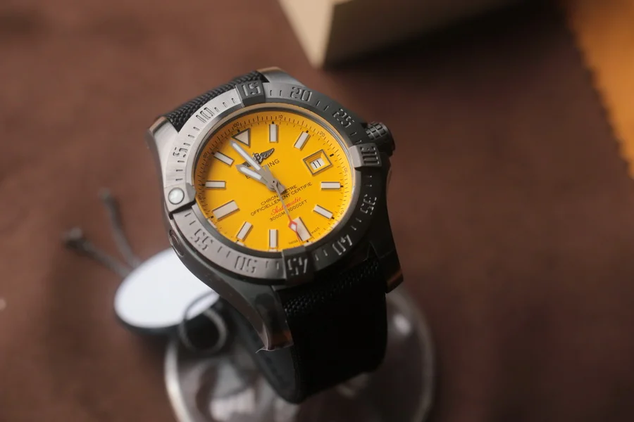 復仇者系列黃狼腕表,直徑45mm,外殼采用黑色PVD工藝,黃色表盤,機芯采用2824機芯,穩定耐用。