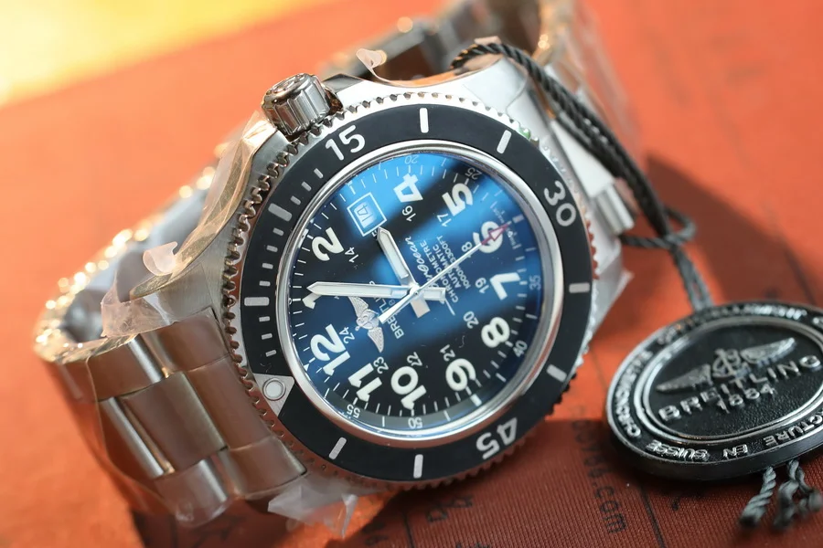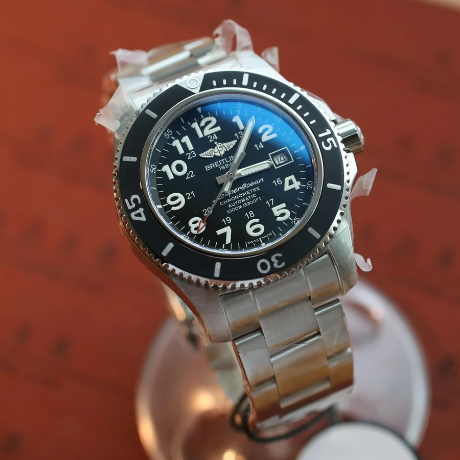 這是一款非常經典的百年靈超級海洋復刻表,手表直徑44mm,可旋轉外圈,機芯采用2824,穩定耐用,密底設計。