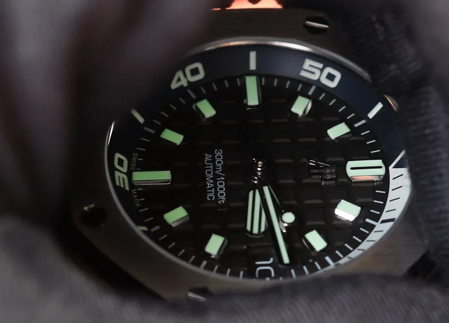 ❷表殼:dps原裝開模,拆解正品原裝數據,3D立體建模,使其尺寸比例與原裝完全一致,所有配件與原裝通用互換,表殼筆直的拉絲工藝和棱角分明的表殼完美融合