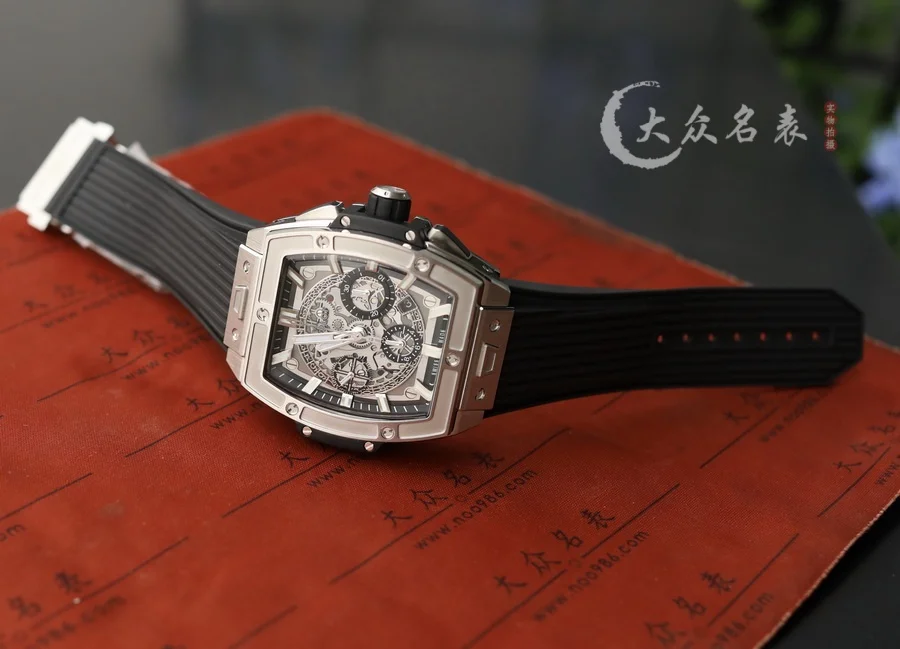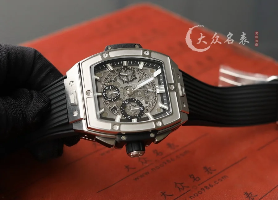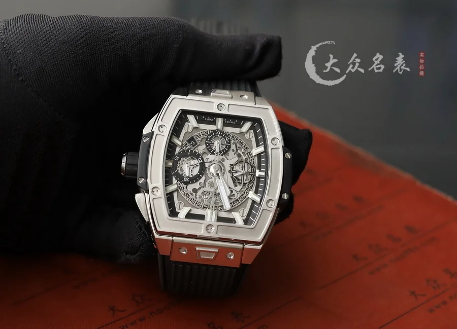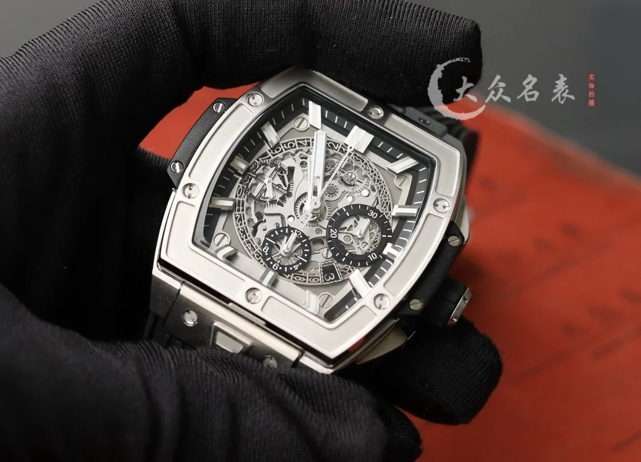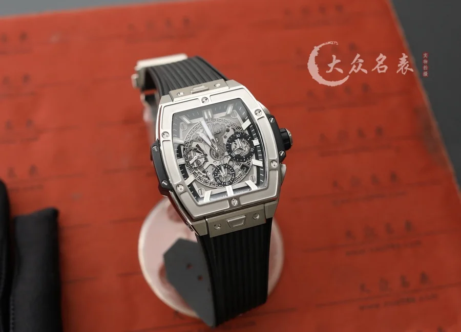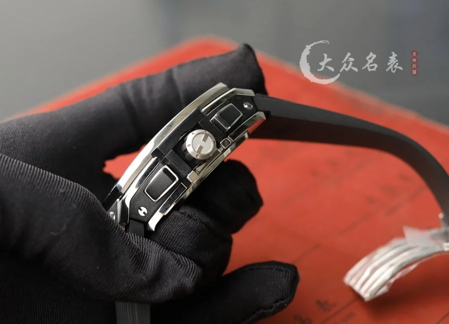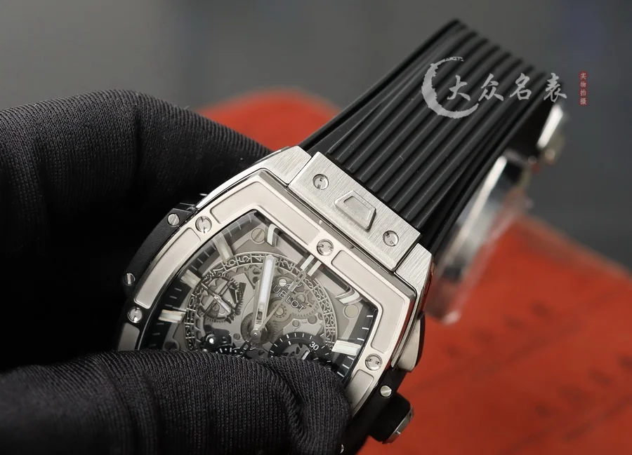 以賽車為靈感,推出全新Spirit of Big Bang限量腕!腕表結合Spirit of Big Bang系列的所有標誌性元素,全新酒桶形表殼。表殼應用鈦金屬跟樹脂材料,借助六枚H型螺絲構建「三明治」結構,傳達「融合的技術」的理念,完美復刻獨家定製HUB4700機芯,原裝折疊表扣,訂製氟橡膠表帶,手表酒桶形設計。