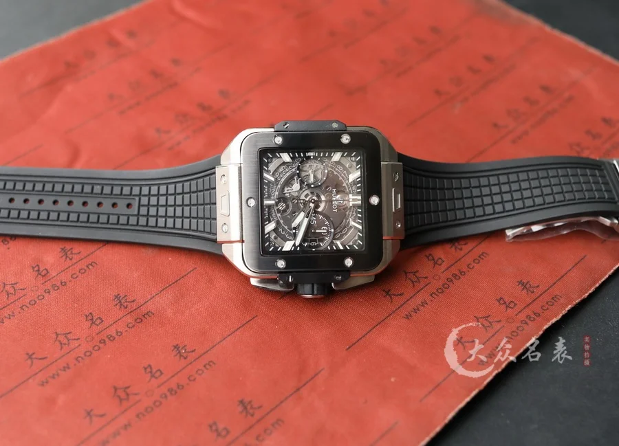 BBF廠全新核心作品 HB SQUARE BANG UNICO系列,宇舶方形五級鈦金➕高透藍寶石字面➕一鍵快拆系統,6點鐘位置設有清晰可見的導柱輪,42mm,全透也是方形的設計款式可以說很少,zf的宇舶也是這個代工的,做工信心有保證!