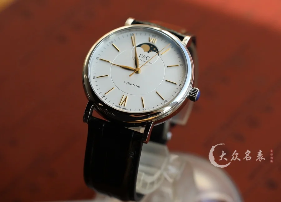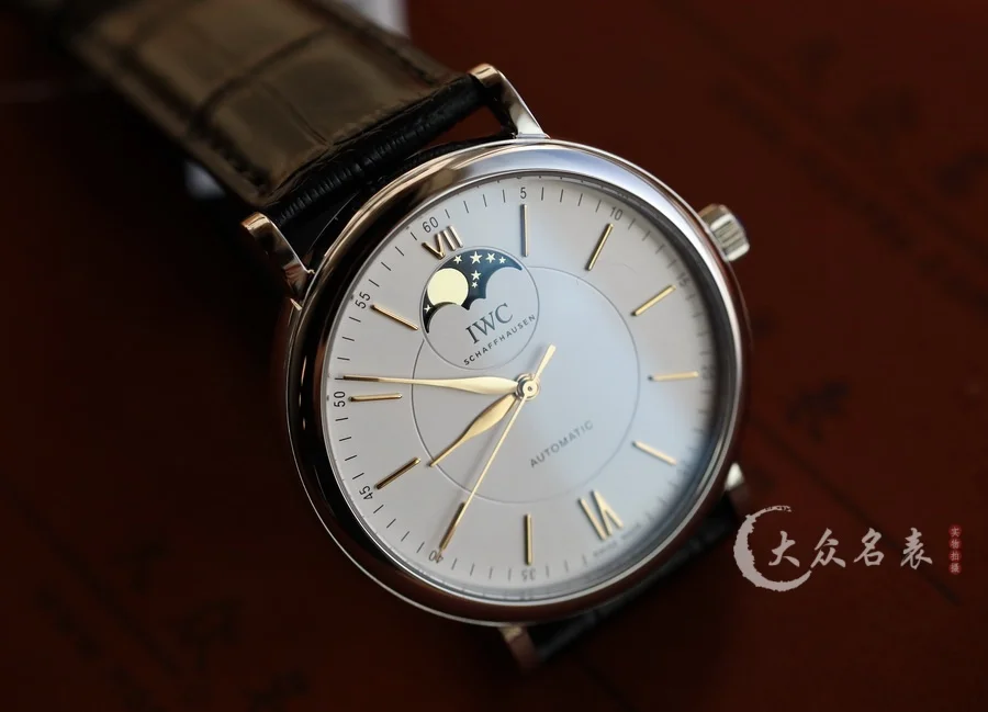 升級V2版萬國柏濤菲諾真月相,一天跳一小格,一個月走一圈,同步正品功能。月相顯示無疑是所有復雜功能中最夢幻美麗的月相顯示設計成一面繁星密布的夜空,月亮和星星仿若懸浮在無邊無際的蒼穹之中。月相以不同場景呈現於人們眼前——月亮時而閃現於雲朵之中,時而懸浮於繁星閃爍的夜空之下。柳葉形指針以優雅的姿態勾勒出時間的神韻全新定製版原裝進口全自動機械機芯,走時精準、穩定、耐用 腕表采用一枚造型精美的穹形藍寶石水晶玻璃表鏡,表鏡經雙面防眩處理偷光光清晰,邊緣處圓潤的弧度透著典雅的氣息。表冠側面飾以簡潔的三角坑紋,結合相對較為突出的表冠設計,上鏈手感非常舒適不銹鋼表殼造型圓潤、精巧,其表耳微微彎曲的弧度符合人體工程學,貼合手腕,佩戴舒適。柏濤菲諾腕表系列一直是萬國家族中的謙謙君子,是含蓄氣質與高雅品味的完美化身。它以簡潔、永恒的設計成為萬國表最熱賣的腕表系列之一,受到男士和女士的一致青睞。