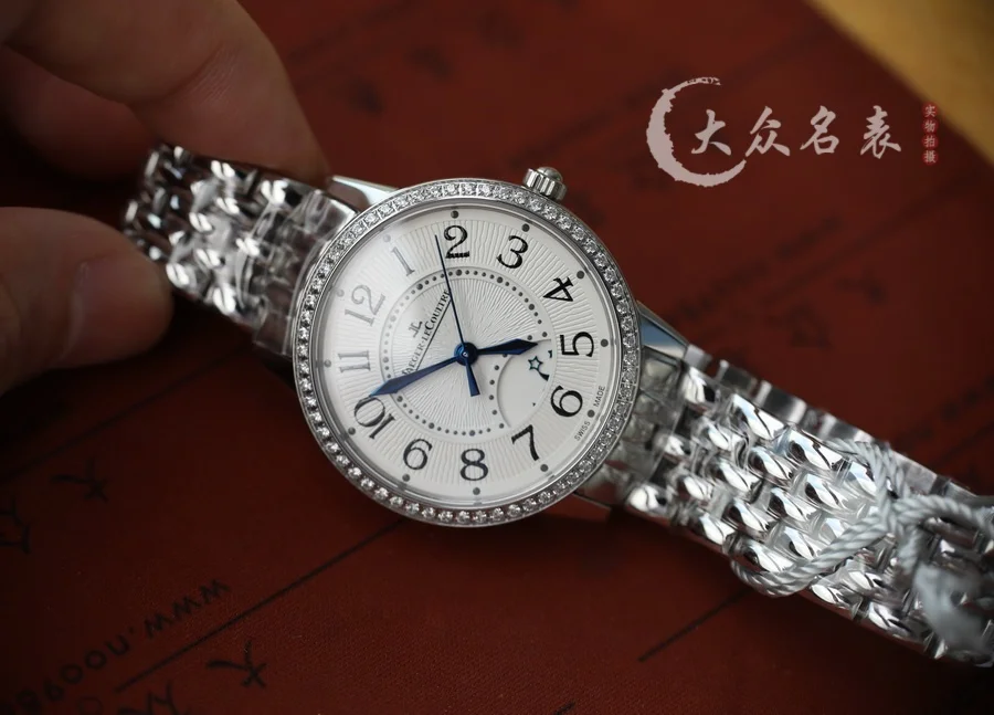 腕表尺寸34mmX8.8mm。簡約幹練的外殼打磨精細,ZF原裝開模一比一復刻外殼版型。確保打磨工藝吻合,質感同步正品。表圈一共鑲有60顆頂級施華洛世奇美鉆共重0.69 克拉。鑲工嚴謹,還原正品最美風采。改積家自產CAL.898A/1機芯,完美實現原裝白晝黑夜變換功能。走時穩定,素質堅挺。最新推出了鋼帶版本。