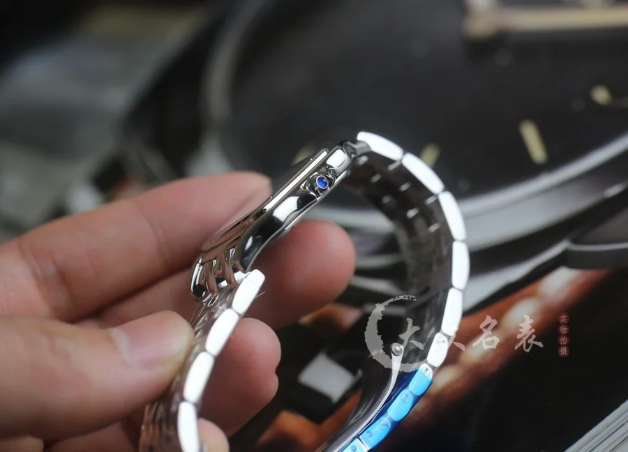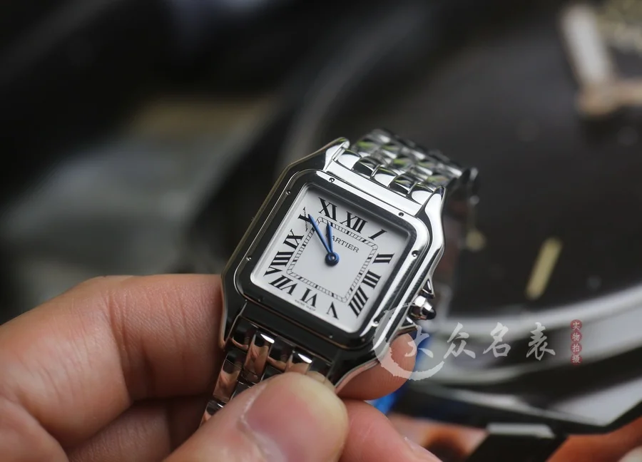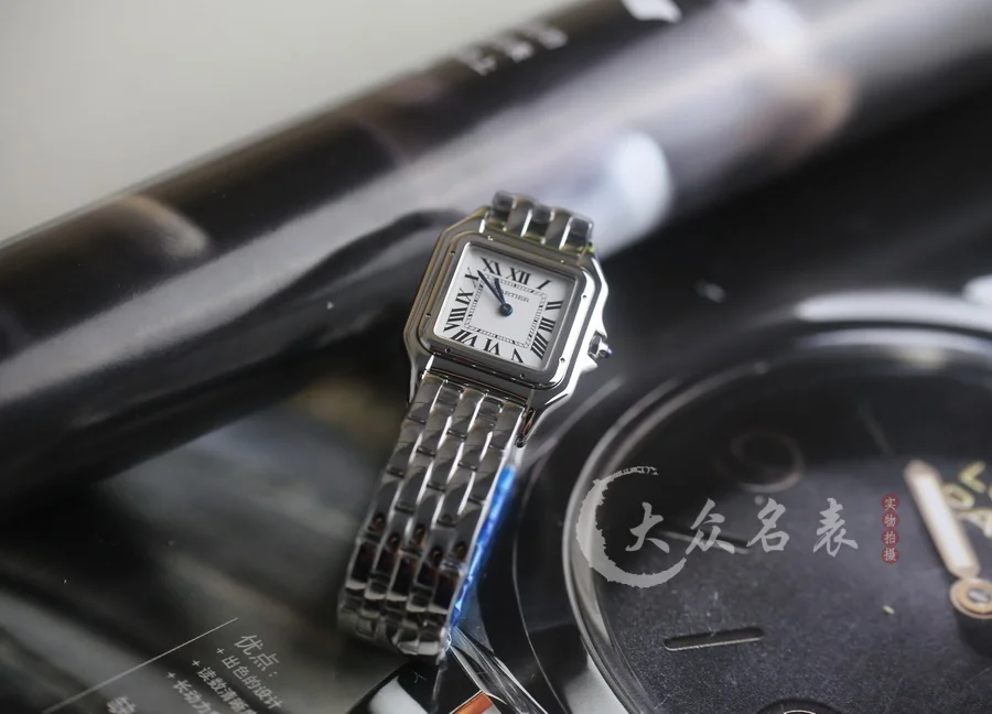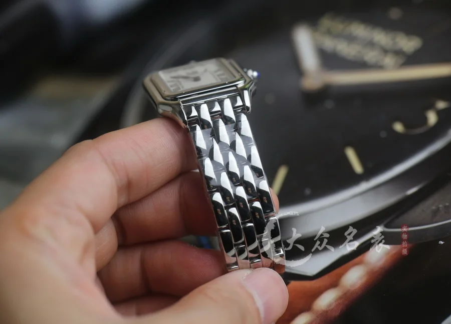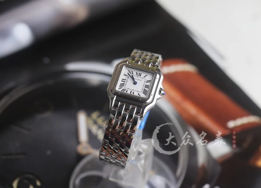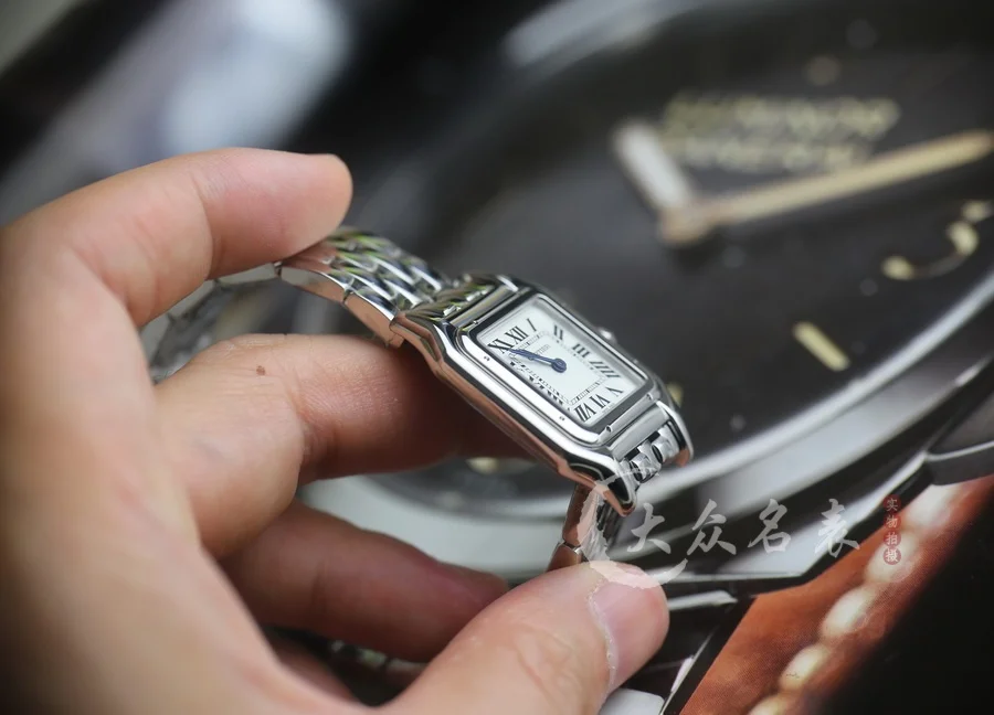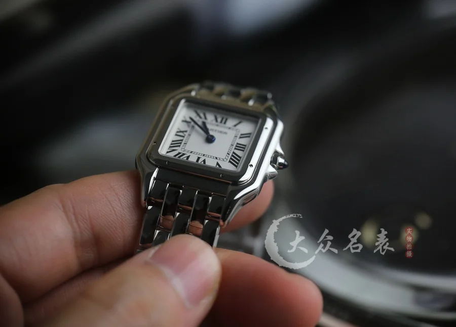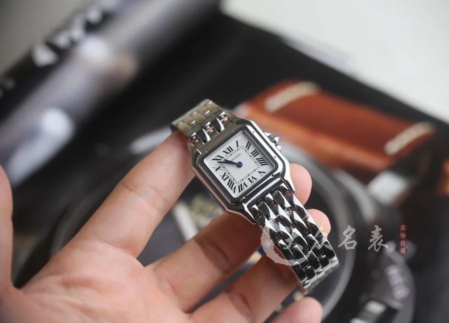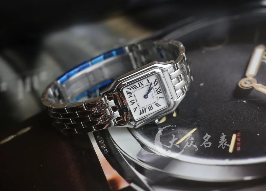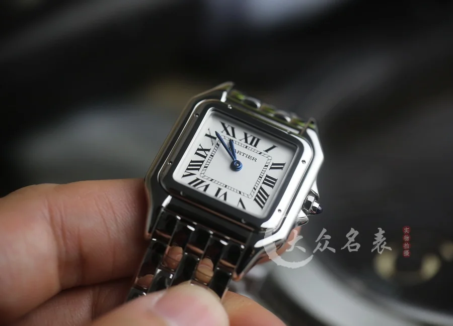 方形表殼線條柔美,精美流線表耳,與表殼一體成型,魅惑動人。是Panthère de Cartier獵豹所傳達的美學風格。表盤上分布著銀色羅馬數字時標,卡地亞標誌性劍形藍鋼指針躍動與表盤之上。表冠鑲嵌一顆合成藍色尖晶石,華麗而不羈。精鋼表帶打磨細膩,與表殼柔美的設計語言遙相呼應。柔軟服帖於腕間,宛若在肌膚上翩翩起舞。獨特的造型彰顯成熟優雅、自信動人的女性形象。尺寸小號23*30MM/中號尺寸27*37MM、厚度6MM(購買前務必確定好尺寸).