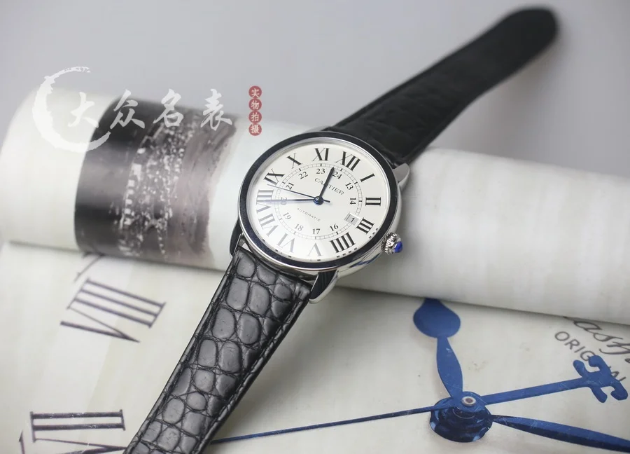 相對於滿大街的藍氣球,倫敦SOLO是卡地亞男裝的另一獨特選擇。同樣擁有卡地亞高辨識度的羅馬時標,劍形燒鋼藍指針和深藍尖晶石把冠,簡單的大三針加上日歷功能既滿足了日常使用又不失大氣。看似中規中矩的外觀仔細觀察可以看到像日歷的底層處理效果、把冠的膠囊型外觀,整體的鏡面跟側身的弧度都是在不經意關註到的細節下功夫,造就了整體的奢華並且耐看,而且是越看越好看。表殼直徑42毫米,厚度8.6毫米。搭配鱷魚皮或者意大利小牛皮任您挑選。