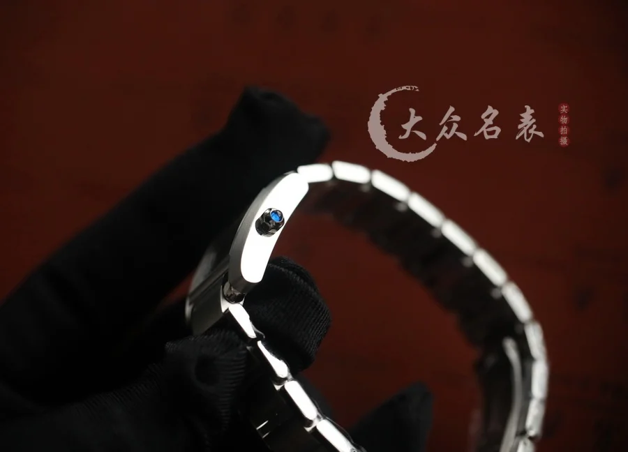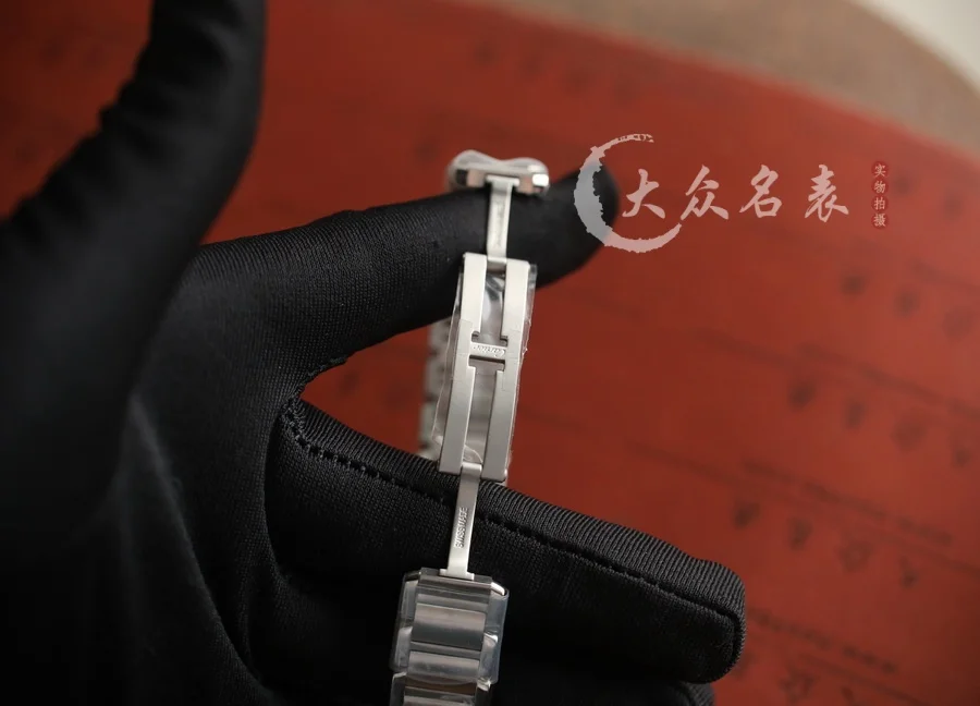瑞士石英機芯,Tank Anglaise有別於其他坦克家族成員的獨特之處在於:表冠集成於垂直表耳內,整體構造形成完美對稱,並且極其簡約。調時間先拔出蘭色把的,再用九邊形的鋼片調時,調完把蘭色把的推進去。這一設計也充分地延續了Louis Cartier的嚴苛美學要求和一體化的設計理念:所有造型都將成為一個整體,連貫而清晰,從側面看Tank Anglaise手表,表冠嵌入垂直表耳的設計如同坦克的輪履,經典高貴。