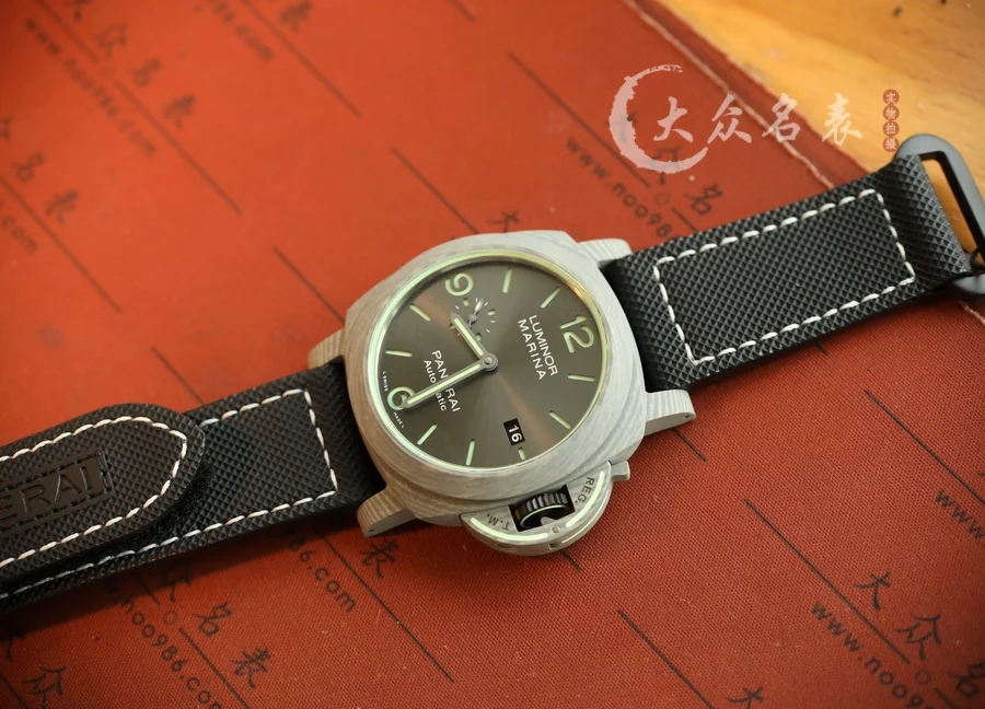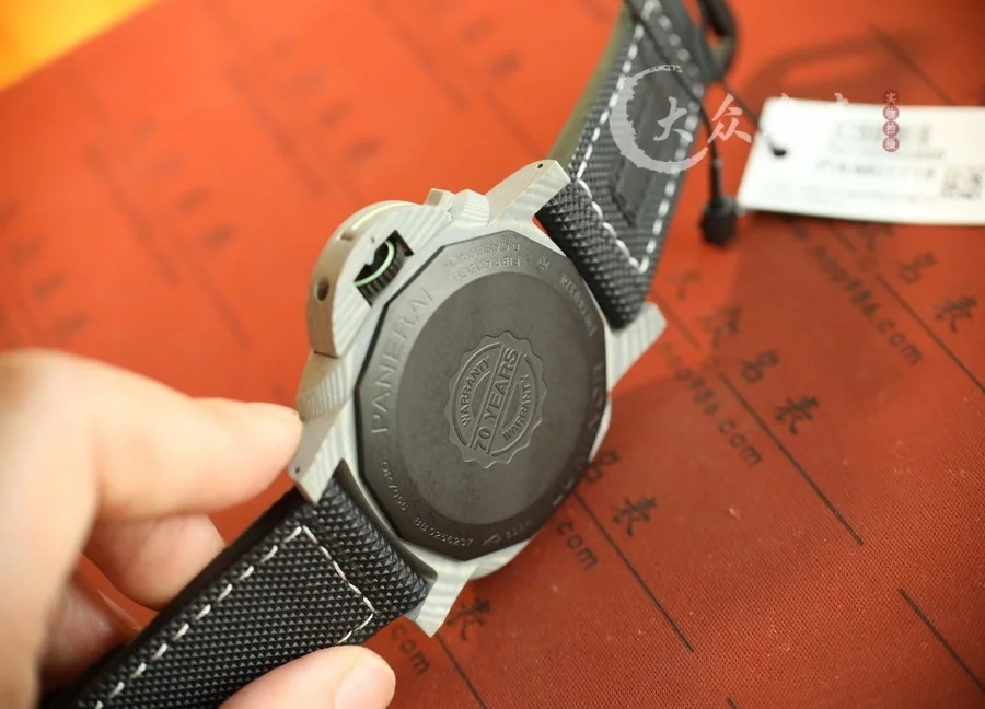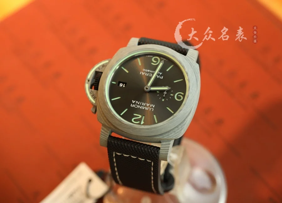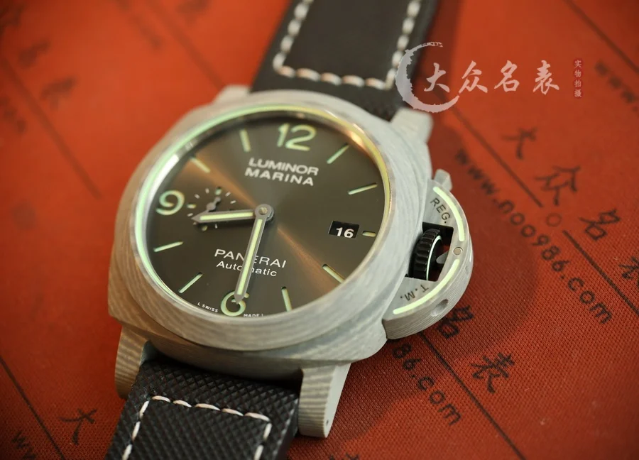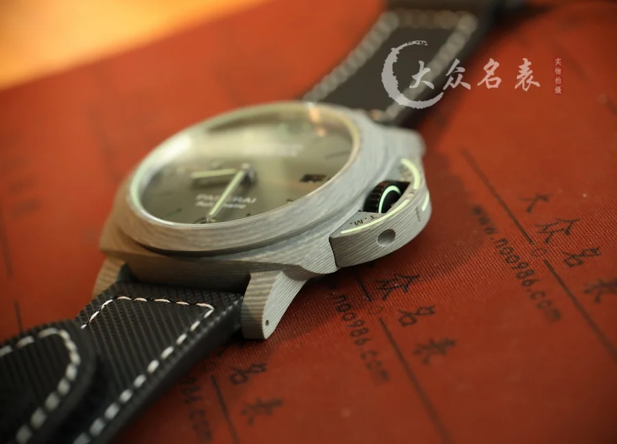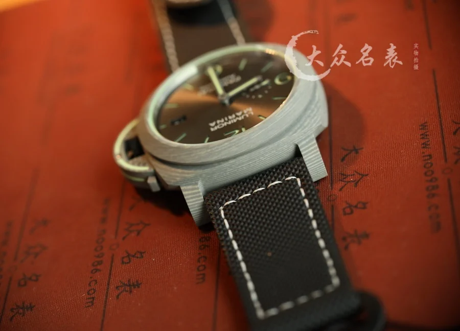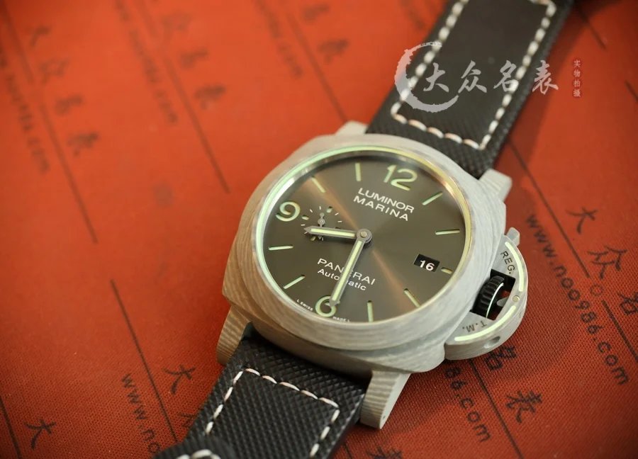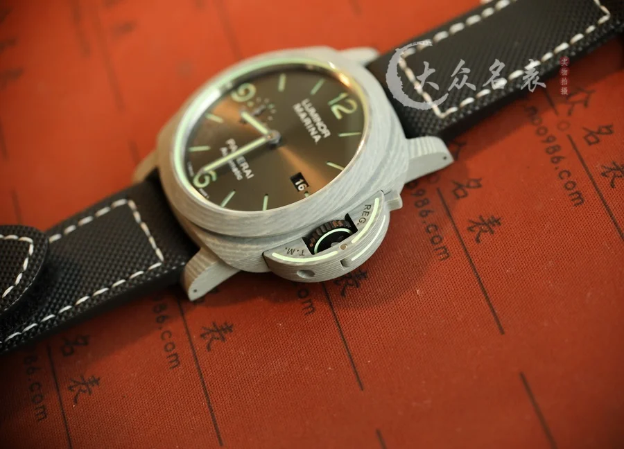 跟PAM1118是兄弟倆!都是傳奇人物! 1、直徑44MM! 2、殼套是碳纖維!輕巧舒適,佩戴方便! 這款表的夜光非常特別,如下圖所示。