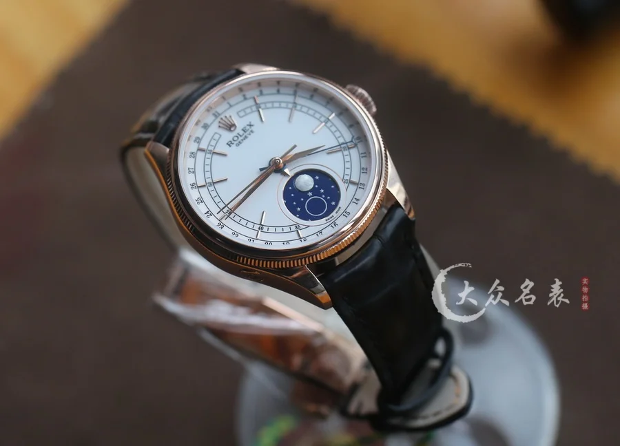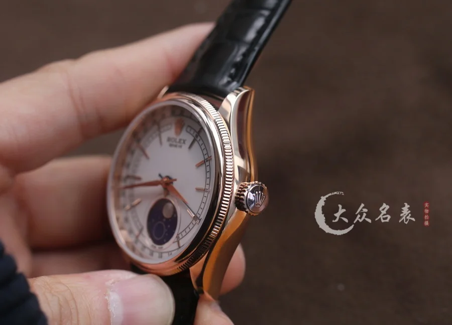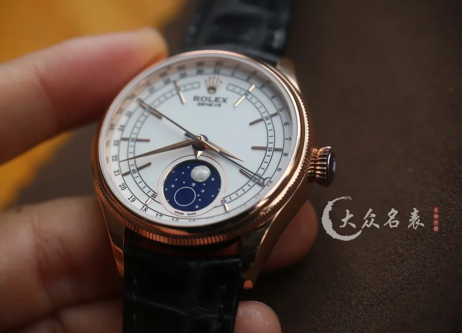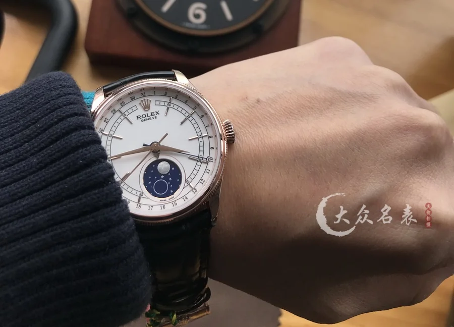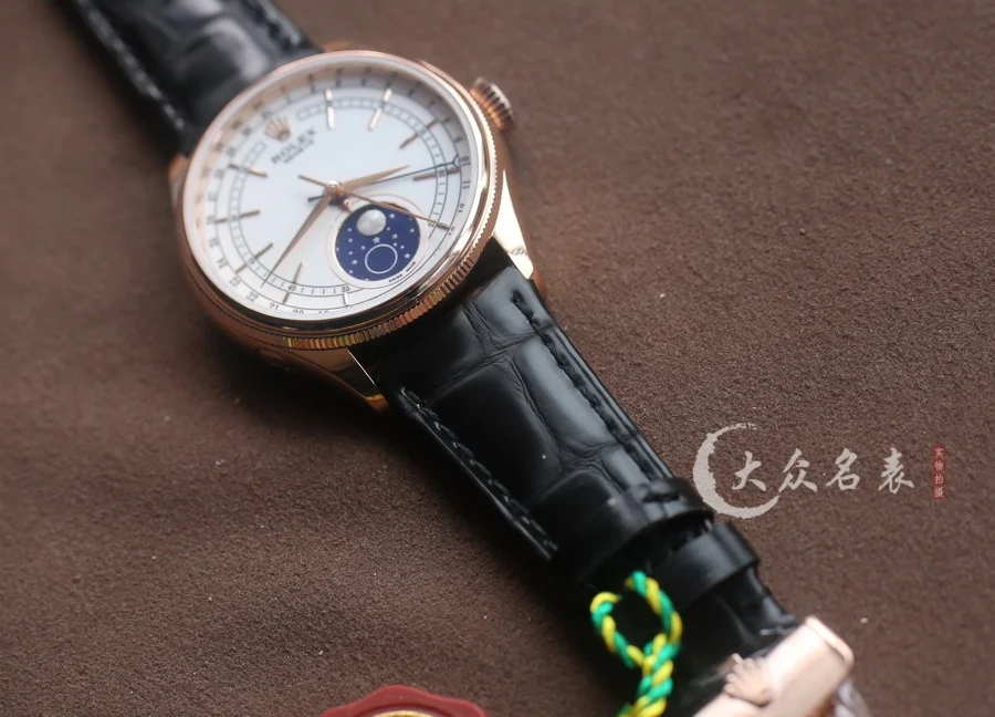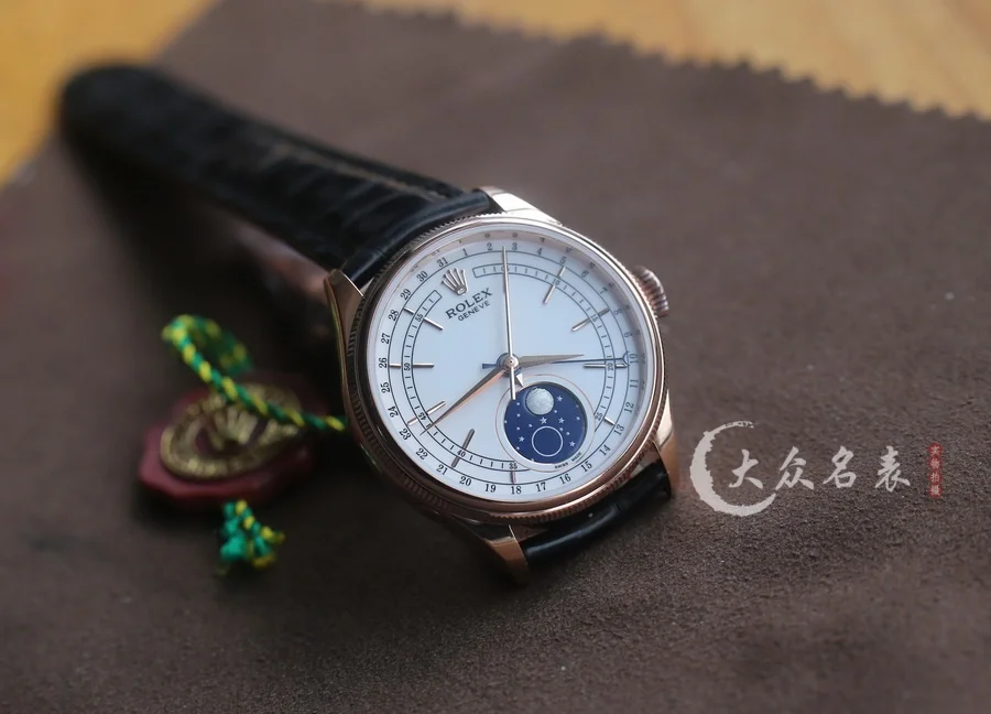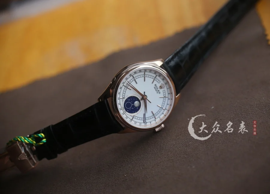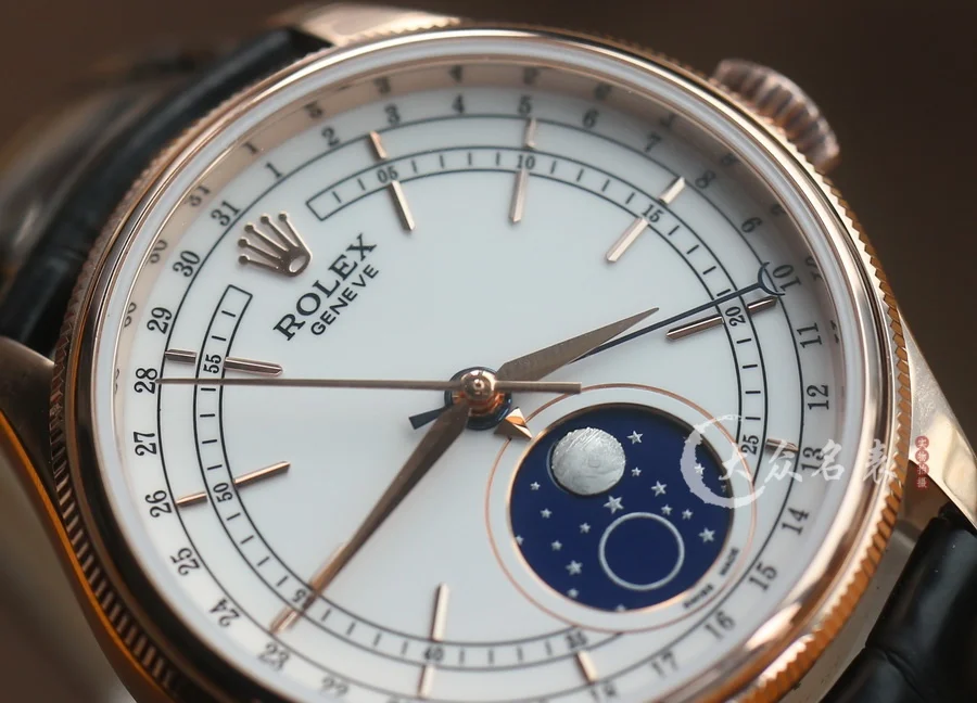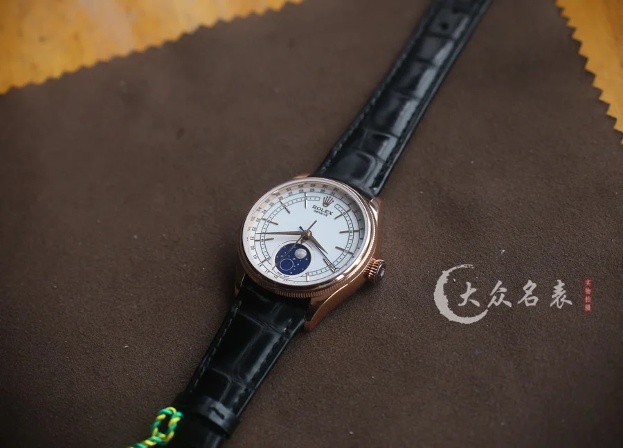 最佳版天然隕石月相切利尼。藍遊絲版定製Cal.3195型機芯,美洲深褐色鱷魚皮表帶,還原特有的闊劍式皮帶剪裁,雙面鍍膜表鏡。