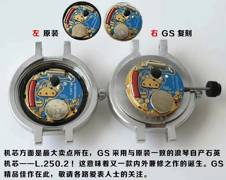 【機芯】和原裝一致采用浪琴Cal.L250石英機芯(機芯可通用於原版)