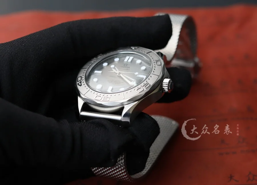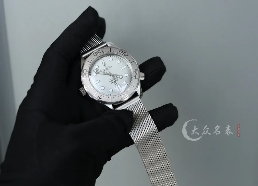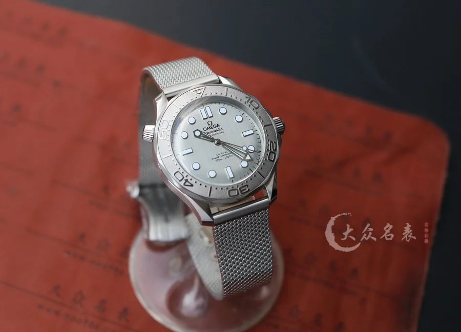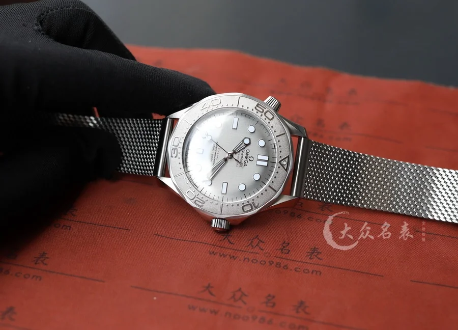 這是歐米茄最近推出的新款,外觀承接007海馬300的設計,沒有日歷,簡約至上。 全外觀是銀色,俗稱水銀海馬。材質放棄了普通版的精鋼+陶瓷的設定,外圈改成了加強的鈦金屬,並且有凹凸紋路。表帶是007的復古精鋼編織表帶。機芯方面同步了VS廠最新V4一體機芯,全部真軸承真寶石,動力提高到55小時左右。