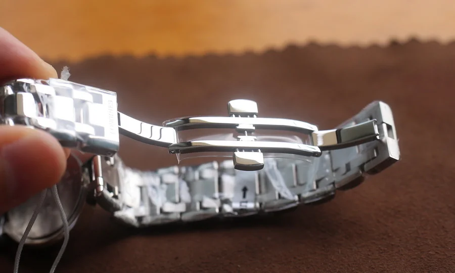 這款是采用鑲鉆刻度+貝殼面,比羅馬字基礎款奢華一些,其他參數和基礎版完全一樣,可以參考之前的介紹。