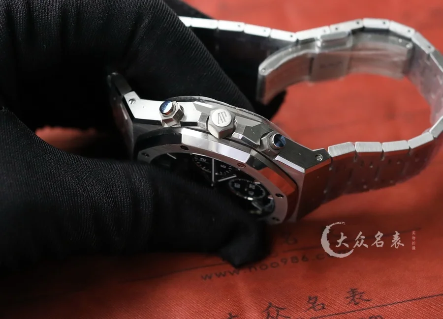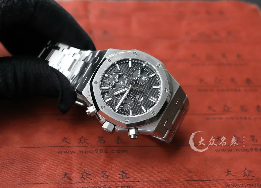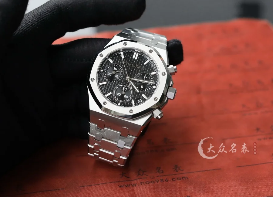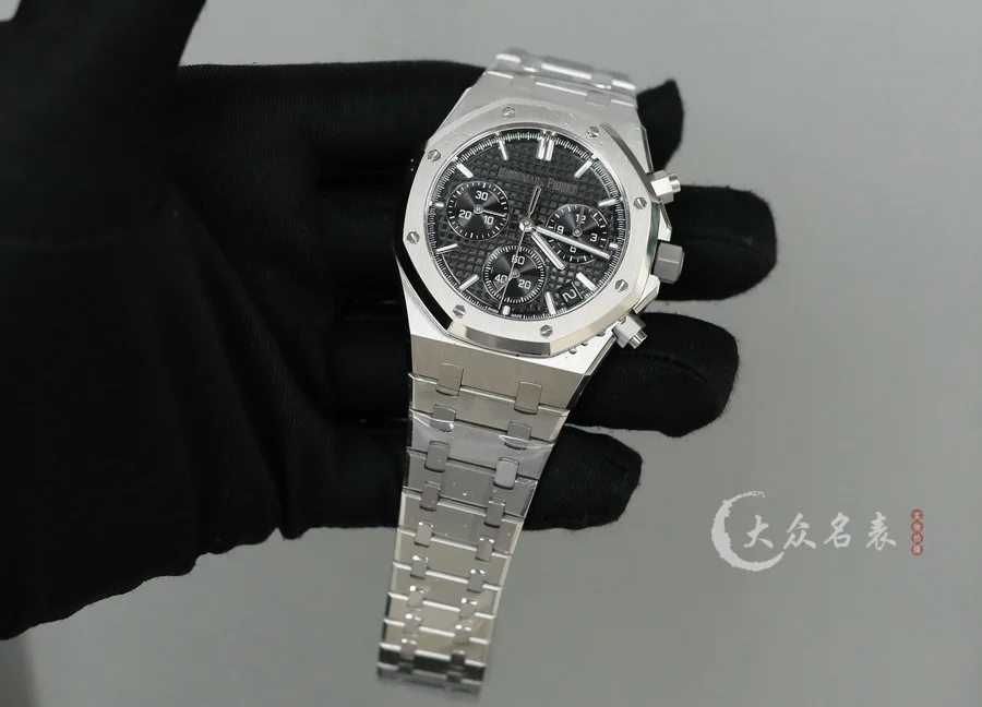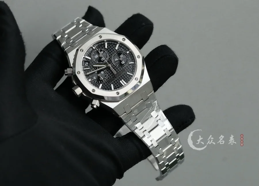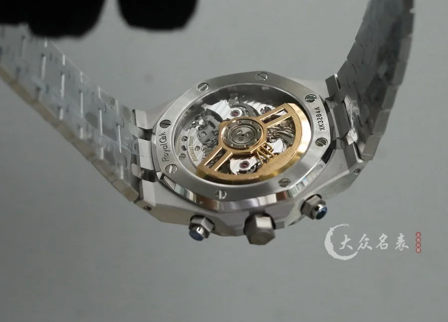 這個系列一直也有廠家做,但是以前的版本一直停留在7750機芯基礎上,7750本來沒問題,但是這款機芯應用在背透款手表上面就必須套假甲板,就顯得非常假並且機芯需要加厚。所以計時款的AP OAK系列我們都沒有分享。今日帶來的完美版是來自於APS,這款機芯是從新開發的,如果買了的表友可以發現背面機芯都是真齒輪,開動計時/關閉,裏面齒輪都是看得到聯動的。如果你喜歡計時AP,APS廠的版本值得選擇。