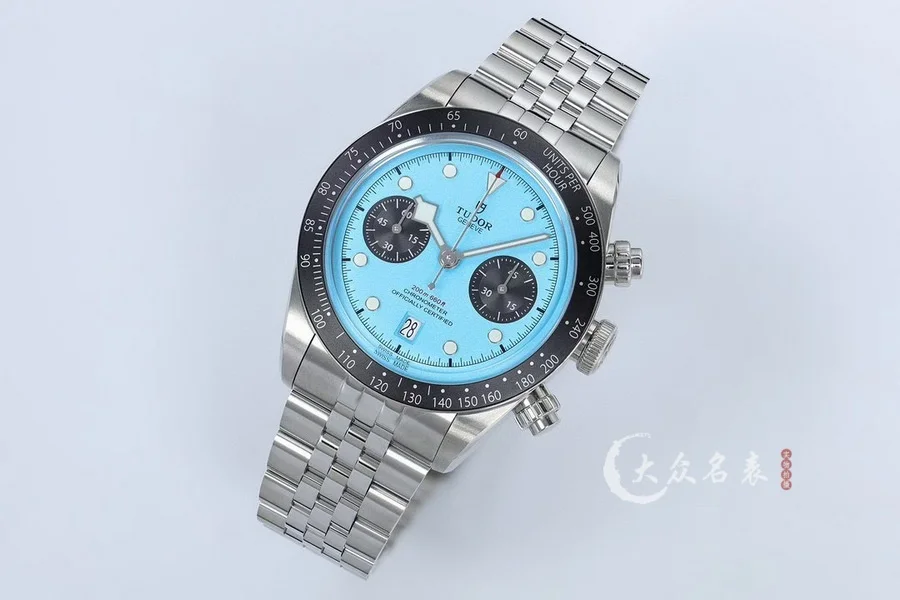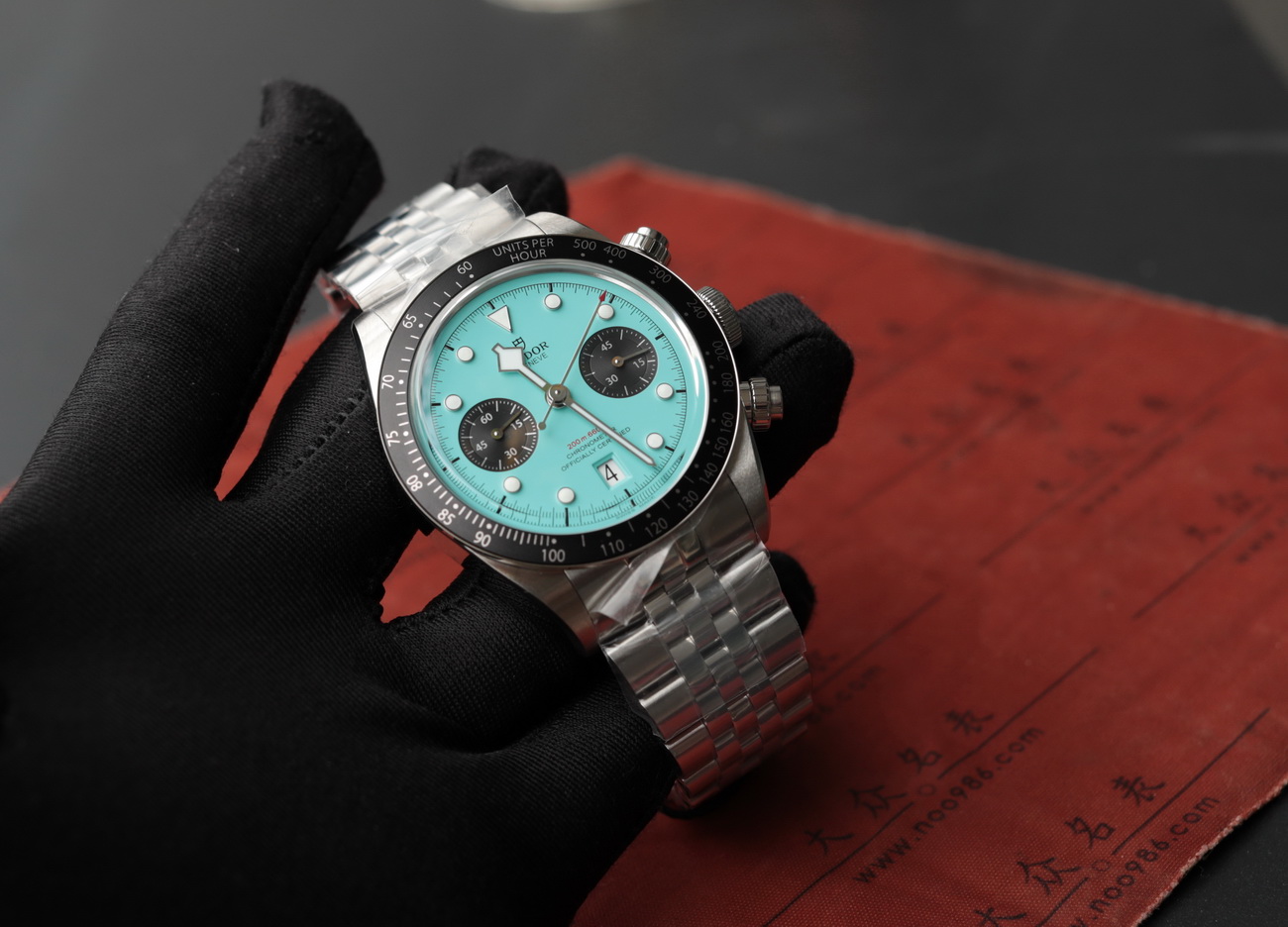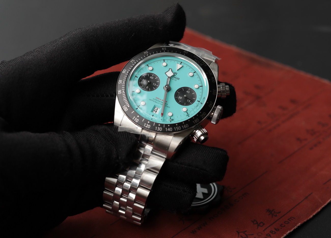 由ZF厂生产,表圈采用阳极氧化铝,带有日历功能,机芯采用没有改动过的7750。因为手表是不背透的设计,所以机芯甲板不需要改动,性能会相对稳定,计时功能全部可以使用。ZF厂加持下的帝舵做工非常好,如果喜欢计时表,这款帝舵新款碧湾计时非常值得选购。表盘有多种颜色选择。
