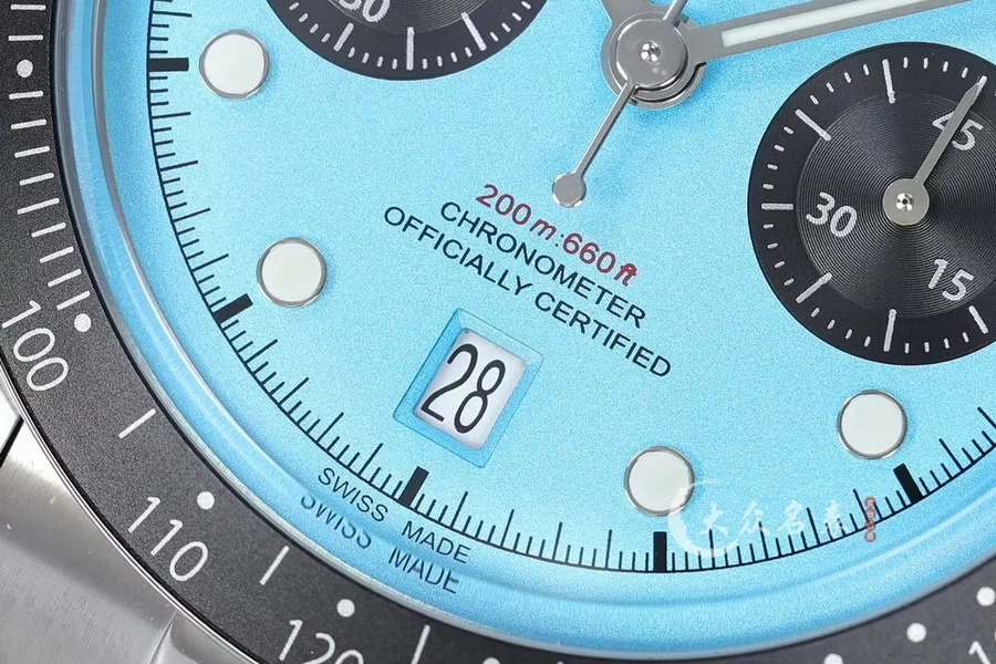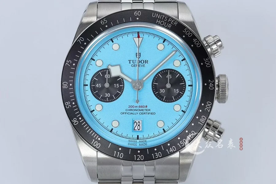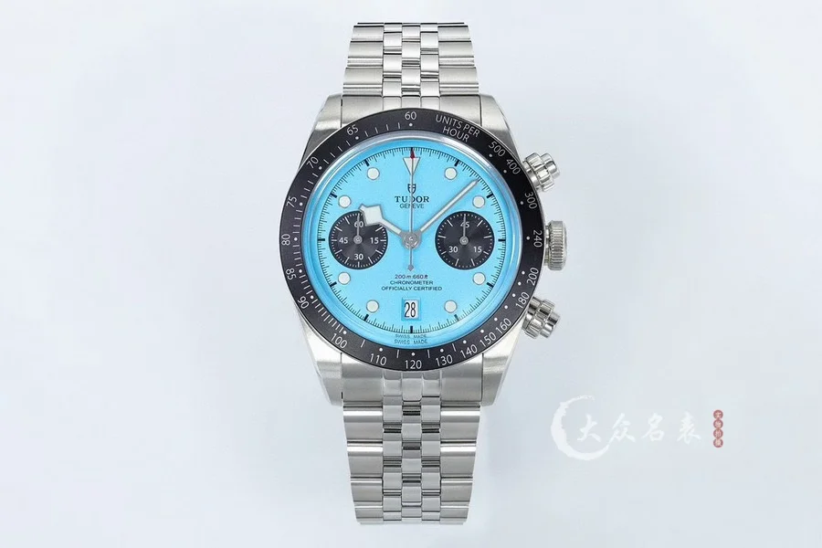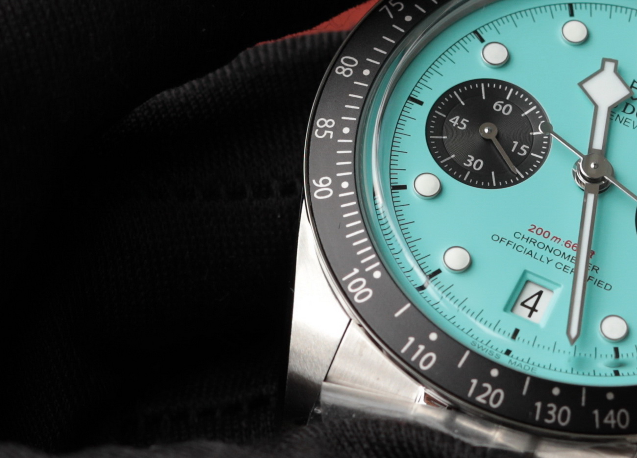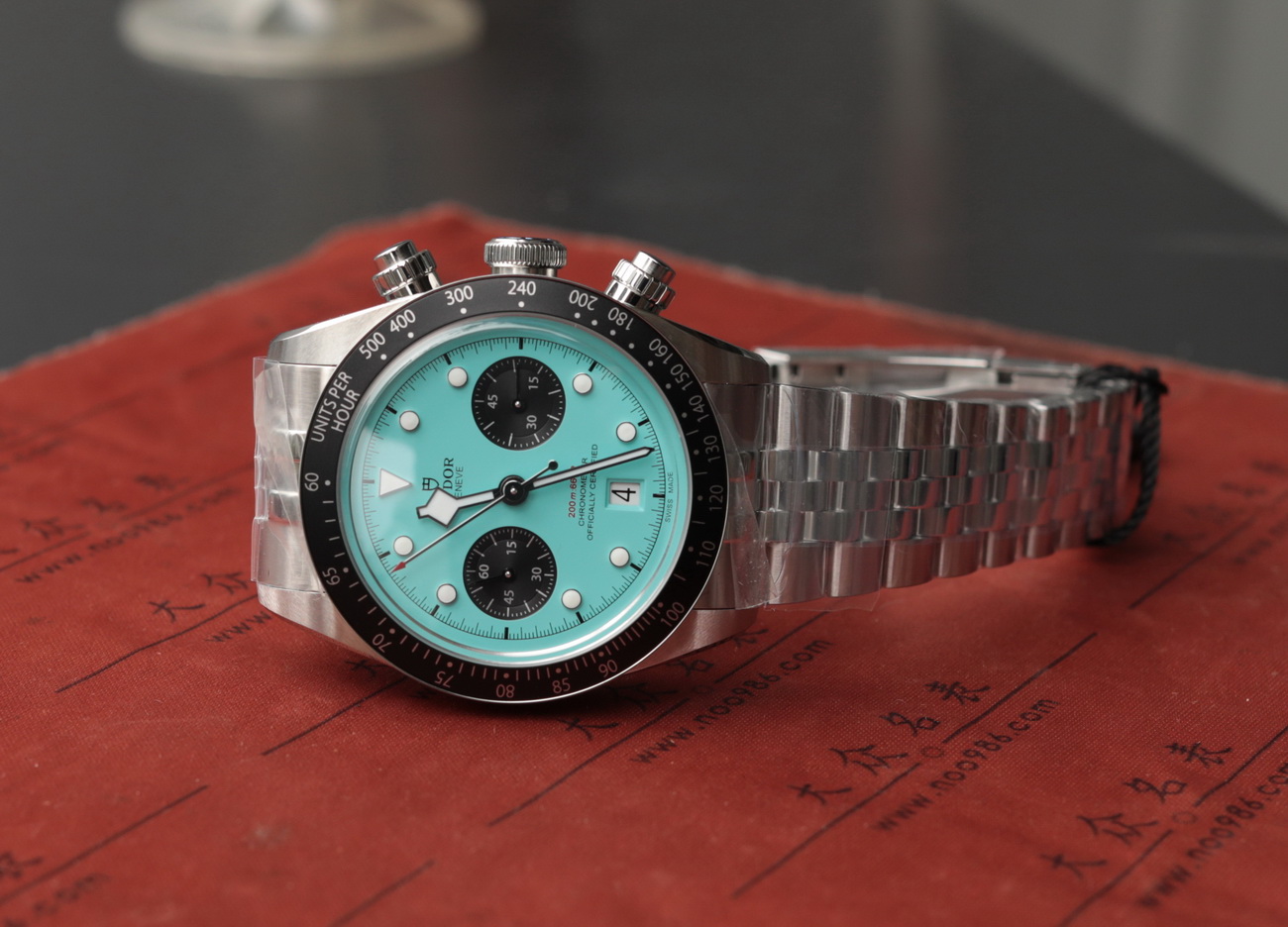 由ZF厂生产,表圈采用阳极氧化铝,带有日历功能,机芯采用没有改动过的7750。因为手表是不背透的设计,所以机芯甲板不需要改动,性能会相对稳定,计时功能全部可以使用。ZF厂加持下的帝舵做工非常好,如果喜欢计时表,这款帝舵新款碧湾计时非常值得选购。表盘有多种颜色选择。