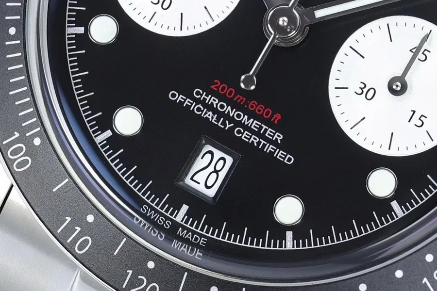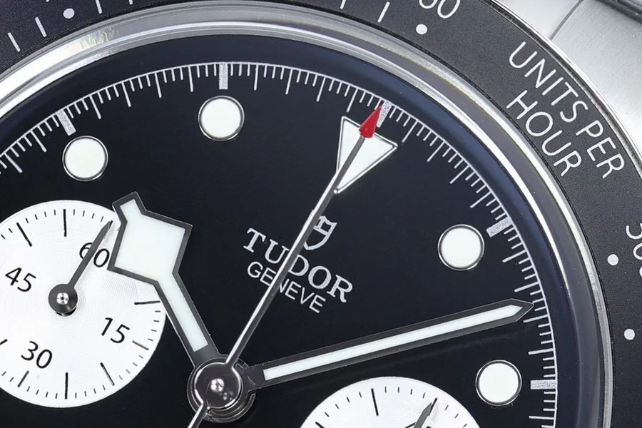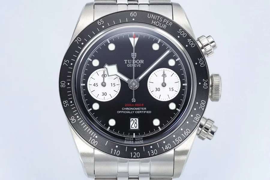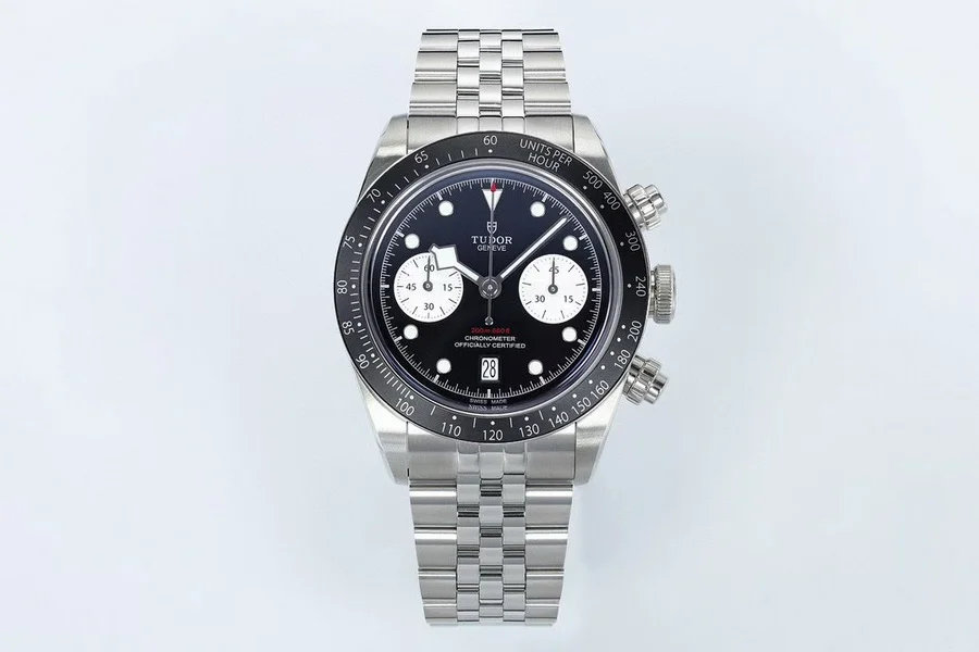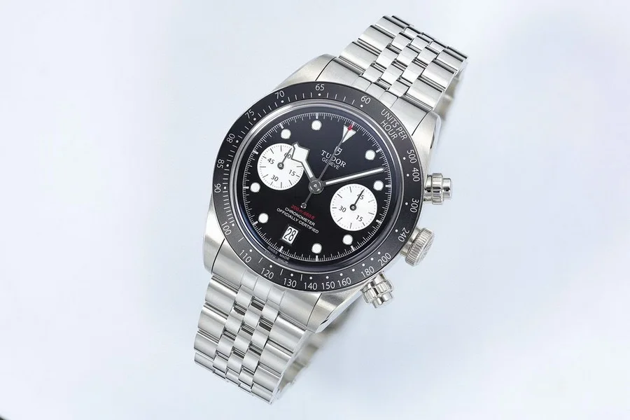 由ZF厂生产,表圈采用阳极氧化铝,带有日历功能,机芯采用没有改动过的7750。因为手表是不背透的设计,所以机芯甲板不需要改动,性能会相对稳定,计时功能全部可以使用。ZF厂加持下的帝舵做工非常好,如果喜欢计时表,这款帝舵新款碧湾计时非常值得选购。表盘有多种颜色选择,白色算是帝舵的“熊猫款。