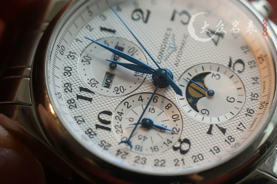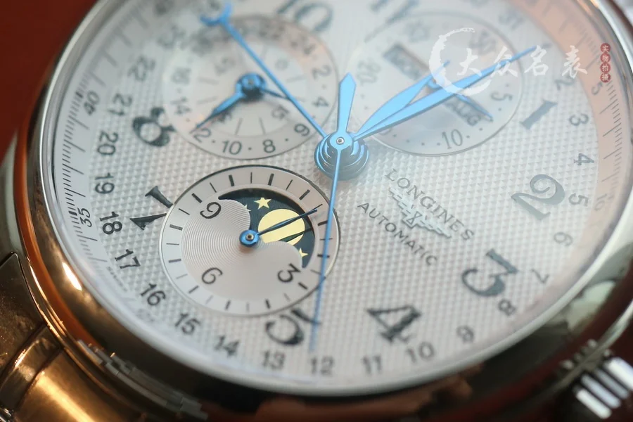 【字面】浪琴月相還原度最高的「麥粒”飾紋,立體印刷的黑色阿拉伯刻度,每一處字體都嚴格參考原裝款式,做到和正品互換的級別